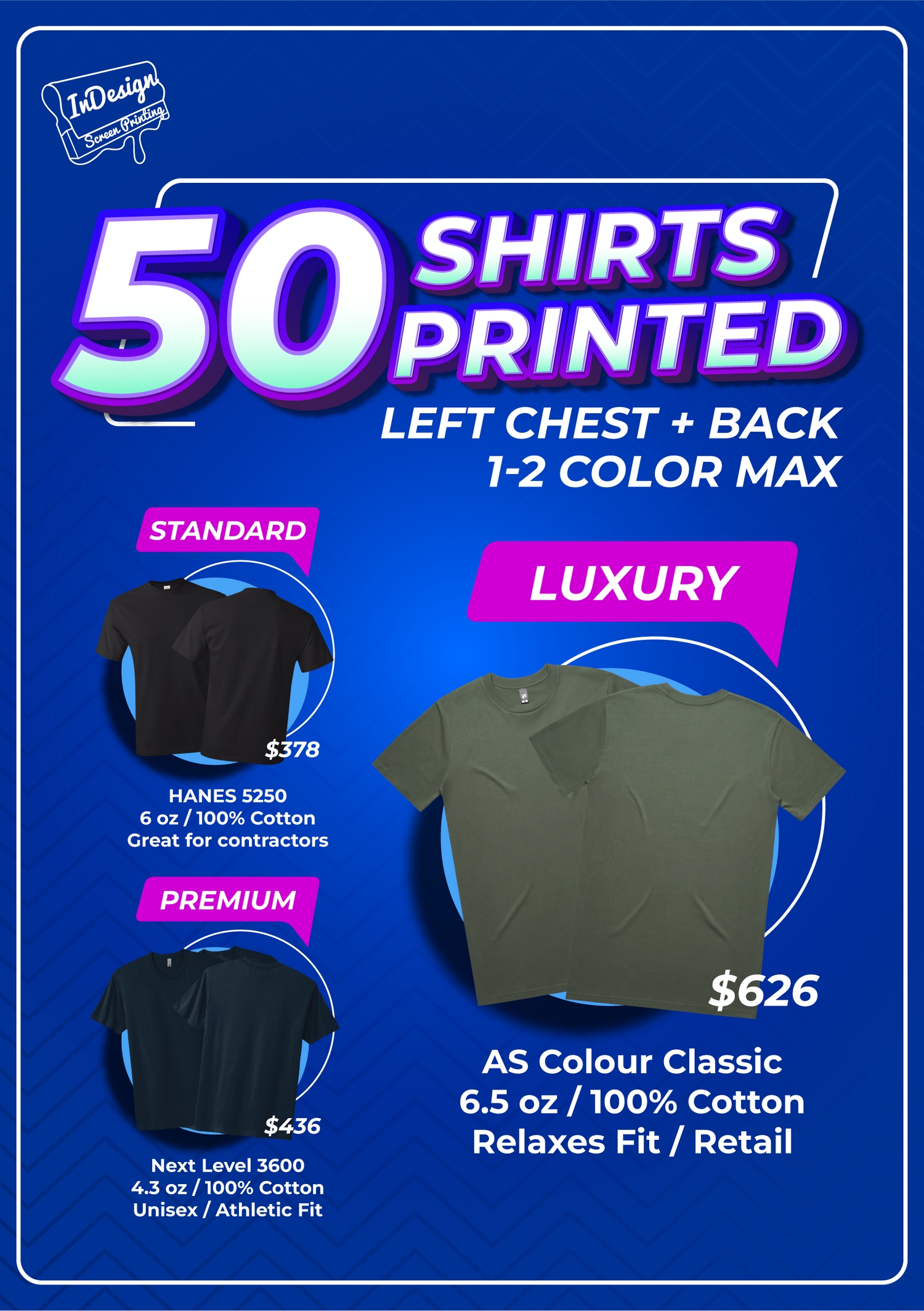 We love T-shirts, and here at InDesign Screen Printing we specialize in eco-friendly Water-based and Discharge inks as well as traditional Plastisol inks. Let us help align your brand with a shirt and printing style that you will fall in love with.